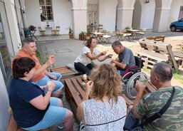 Kromě toho dobrovolnice pravidelně zapojují klienty i do svých vlastních aktivit. Například ve Vratíkově pořádaly Velikonoční výstavu, na kterou dorazilo několik klientů, včetně Pavla, který zde vystavil své linoryty. Hanka a Petra však nezůstanou jen u kulturních akcí – pomáhají i s běžnými denními záležitostmi, hrají s klienty stolní hry nebo si prostě jen povídají. A když počasí nepřeje venkovním aktivitám, prostor pro společný zpěv, kytaru nebo akordeon se vždycky najde. Hanka dokonce příležitostně hraje se svým kolegou v duu a zajišťuje živou hudbu na oslavách narozenin klientů nebo při zahradních slavnostech.