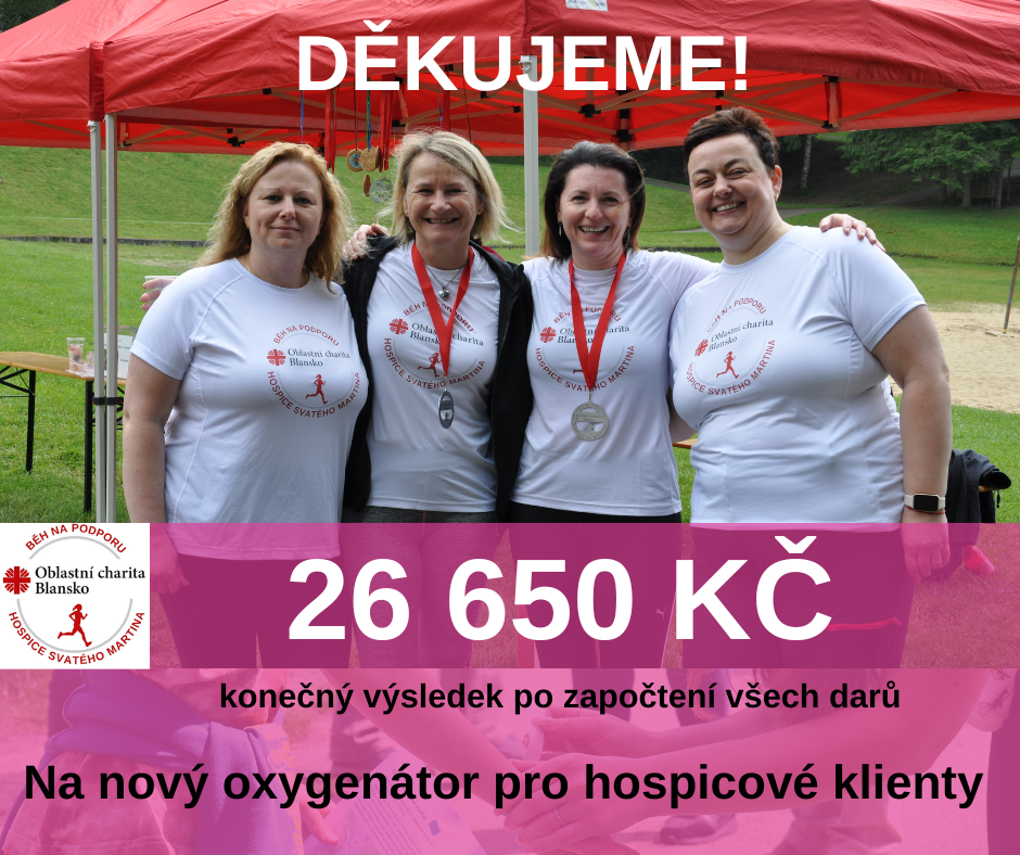 Na nový mobilní oxygenátor na baterie pro hospicové klienty jste vyběhali částku 26 650,00 Kč (konečný výsledek po započtení všech darů)